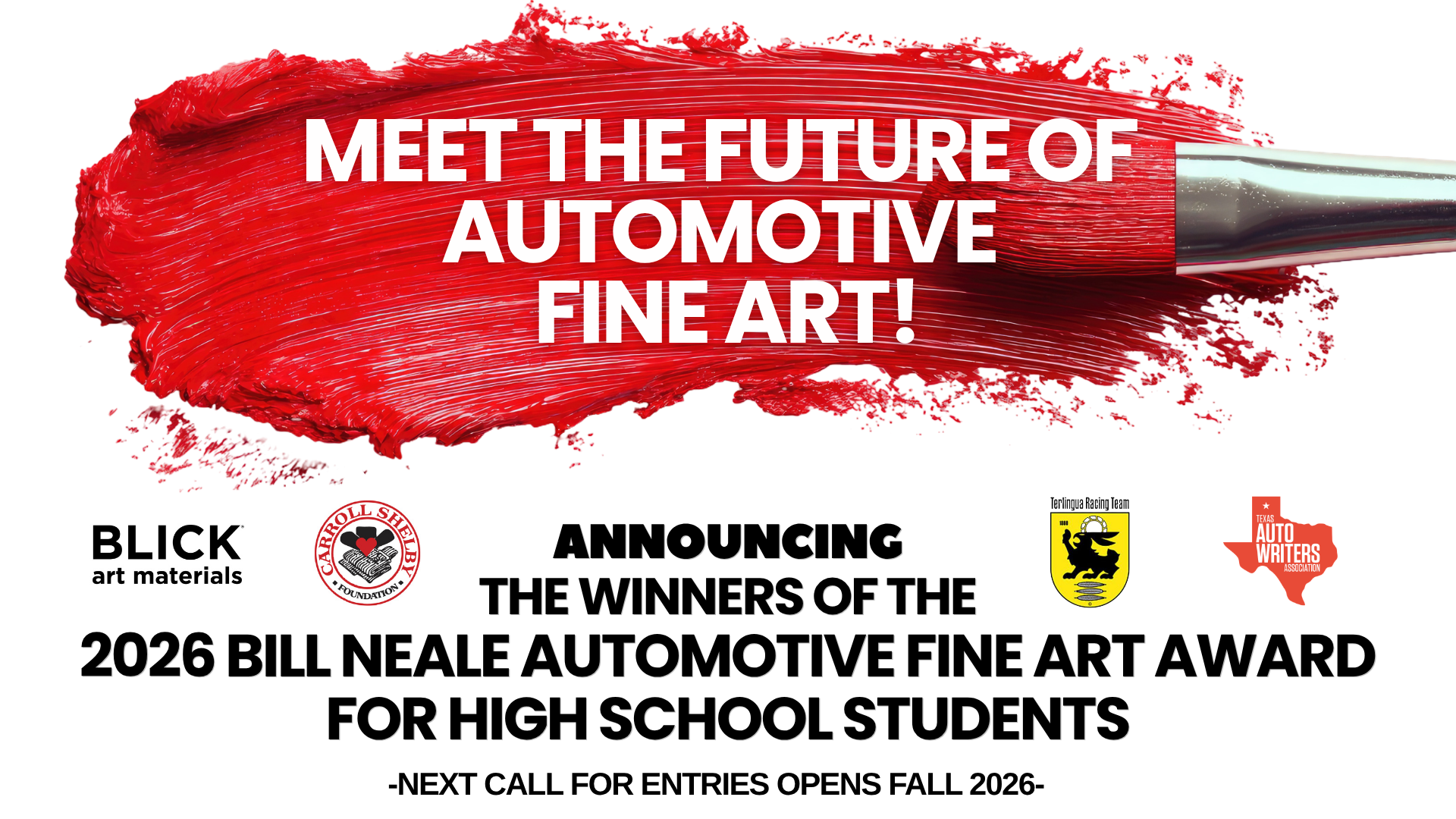 Project Brief: :Bill Neale was well-known for his posters promoting automotive events, races and road rallies. The 2026 Bill Neale Automotive Fine Art Award for High School Students asks entrants to create an original, signed poster depicting one of the following: