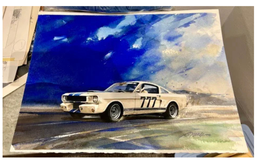 Neale’s automotive artwork and writer portraits graced the covers and pages of many publications including Car and Driver, Automobile, Road & Track and Cavallino, as well as many automotive event posters. He also created the logo for the ficticious Terlingua Racing Team that made its way onto Shelby Mustang race cars including a GT/350 driven by Ken Miles.