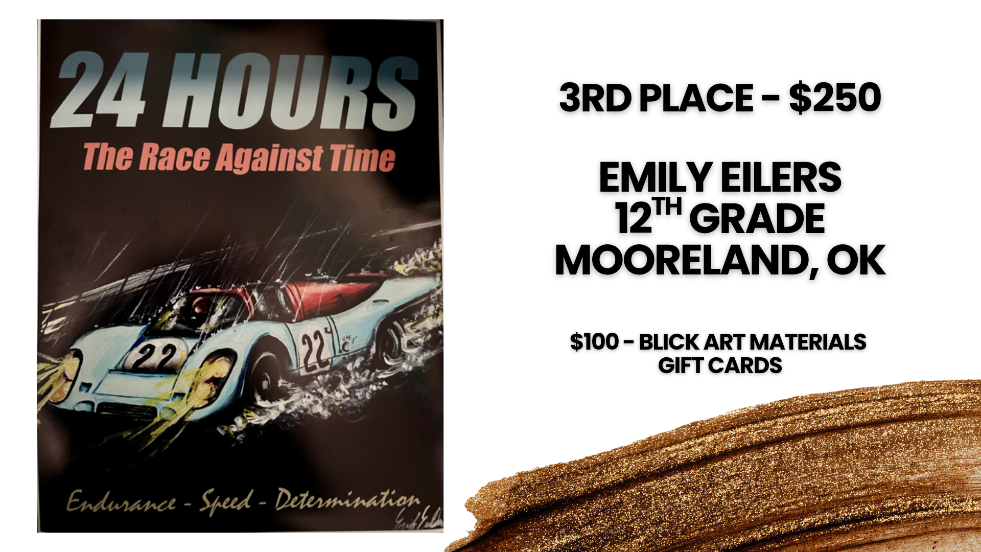 3rd place winner: $250 Cash Prize + $100 In BLICK Art Materials Gift Cards